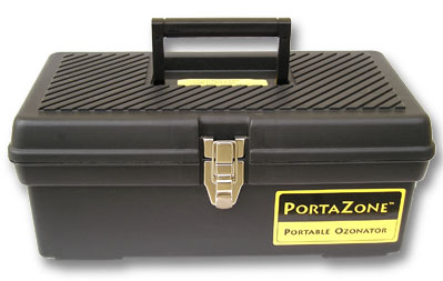 This model of the PortaZone portable ozonator uses an ultraviolet (UV) bulb to make ozone. Ozonated water is great for cleaning fruits and vegetables and sterilizing household items; drinking it can offer health benefits. You can also treat breads, grains and other foods to eliminate mold and fungus; and ozonate olive oil and other oils (with the optional olive oil extension) for topical applications such as skin conditions. This easy-to-use model outputs 109 mg. of ozone per hour. Parts are permanently affixed inside a hard plastic carry case with handle. (Click here for view of closed box.) Weighs 4.5 lbs; dimensions: 12.5"W, 5.5"H x 7"D. Comes with one water diffuser; replacement diffusers can be purchased separately.